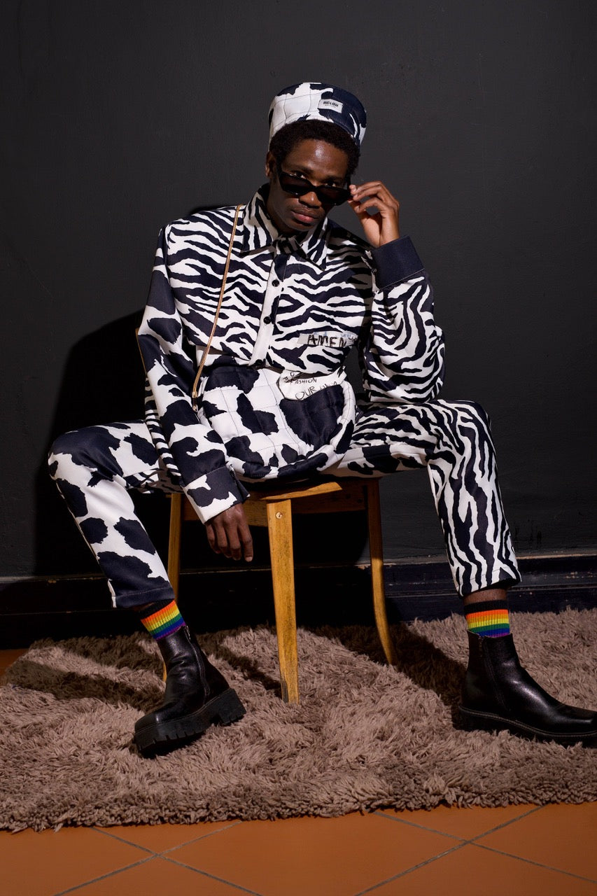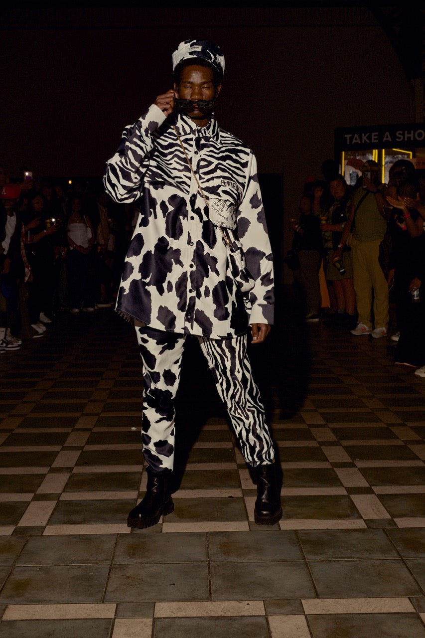 A bold two-piece set celebrating the vibrant diversity of South Africa . This monochromatic look plays with a striking mix of contrasting prints—symbolizing the coming together of different cultures into one powerful identity. Sharp tailoring meets expressive pattern-blocking, creating visual rhythm and balance. Each print stands alone, yet connects seamlessly, reflecting how individuality and unity can coexist. This piece honours the historic year when a nation embraced freedom, equality, and the beauty of its many voices.