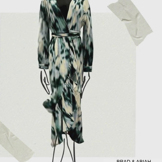 This dress knows the power of a slow entrance. With a plunging neckline, cinched waist, and silky drape that skims every step, it’s giving quiet confidence with a wicked undertone. The moody, fluid print feels like midnight in fabric form, mysterious, sultry, and absolutely not for blending in. It’s the kind of dress that doesn’t chase attention… it lets attention come to it. Wear when you want to be unforgettable without raising your voice.