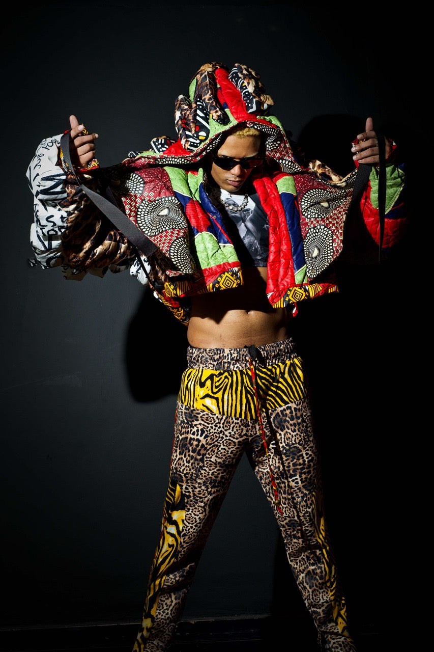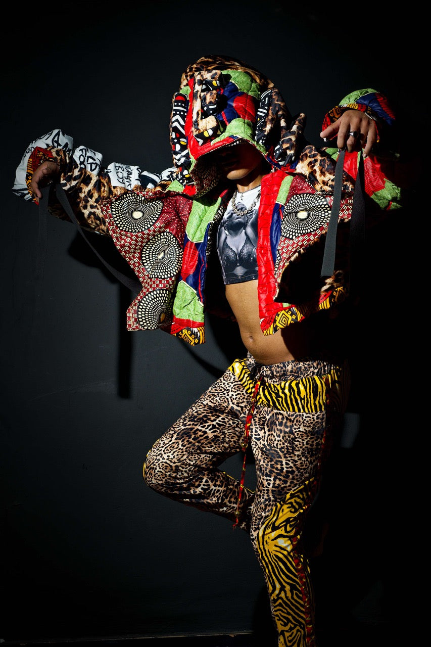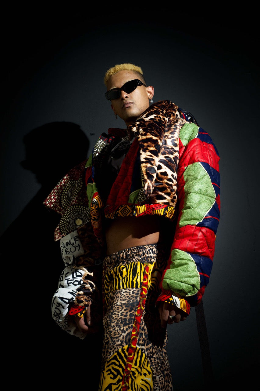 This once-off quilted crop jacket is a powerful wearable artwork capturing a defining moment in South Africa’s journey to freedom. The piece features intricate 3D design elements that bring depth and dimension to the story it holds. At the heart of the jacket is a hand-crafted felt artwork portraying Nelson Mandela and F.W. de Klerk with their hands raised in unity — a symbolic moment from the day Mandela was released from prison, marking the beginning of a new chapter for the nation.